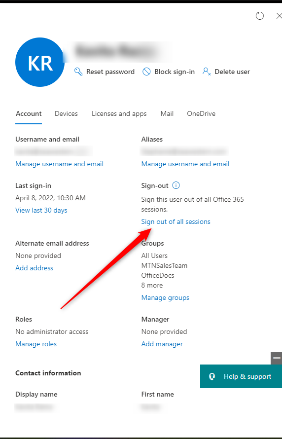 - Reset User Password in the Office 365 admin page, Admin Portal Users>Active Users